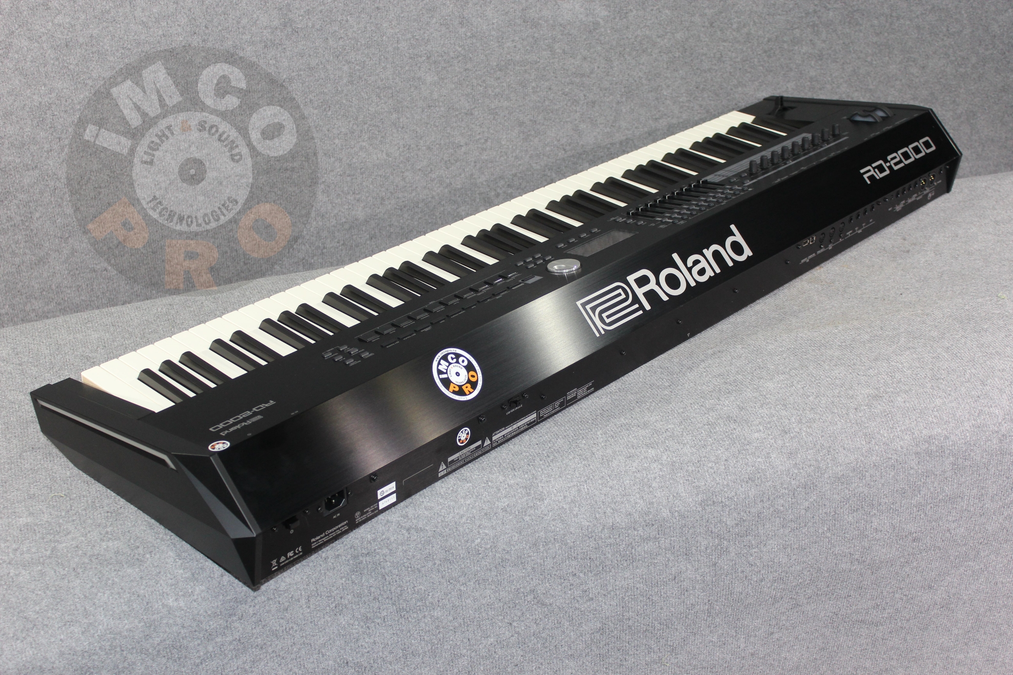 Коммутация: балансные и небалансные общие выходы, отдельный выход для сабвуфера, 4 входа для педалей, вход для внешнего источника звука, 3 MIDI-разъёма, USB to host, USB to device, разъем для наушников.